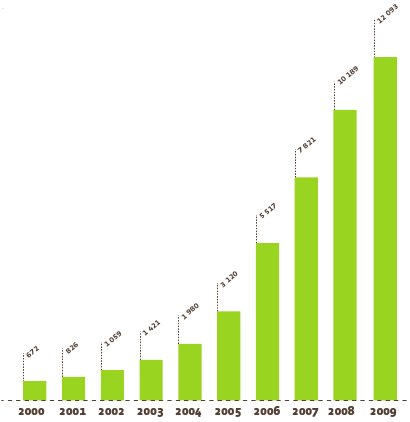 Рисунок 1. Динамика потребления биотоплива в странах ЕС 27 в 2000-2009 гг. (источник: EurObserv'ER)