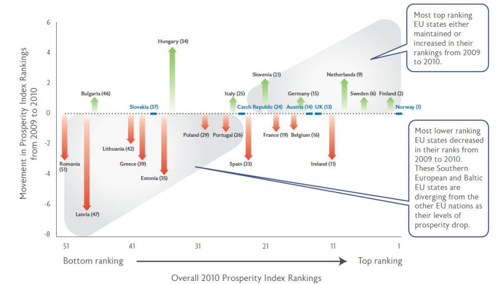 Рисунок 10. "Две Европы" - тенденции Евросоюза (источник: Legatum Institute)
