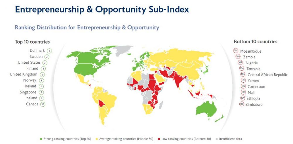Рисунок 3. Мировая карта предпринимательства и возможностей (источник: Legatum Institute)