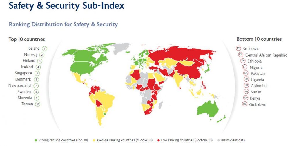 Рисунок 7. Мировая карта безопасности (источник: Legatum Institute)