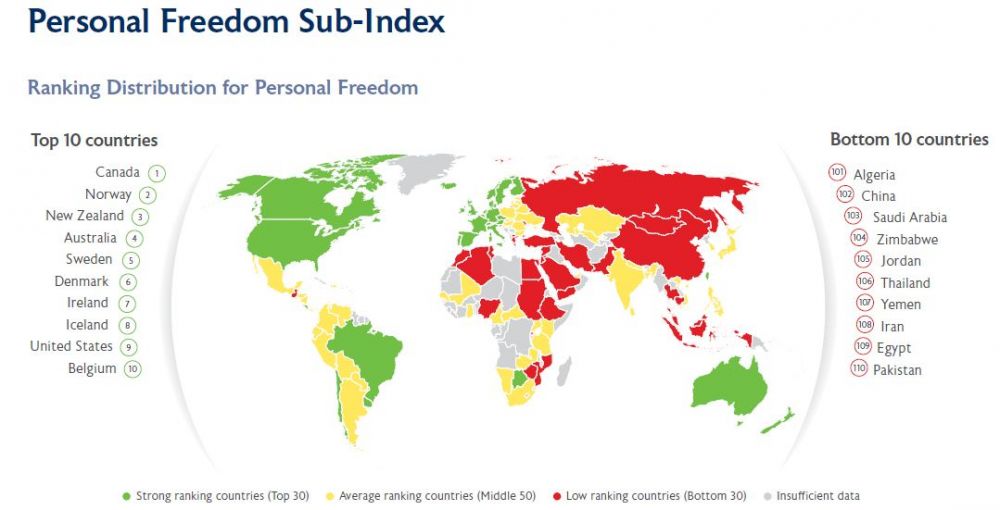 Рисунок 8. Мировая карта личной свободы (источник: Legatum Institute)