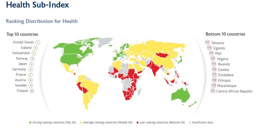 Рисунок 6. Мировая карта здравоохранения (источник: Legatum Institute)