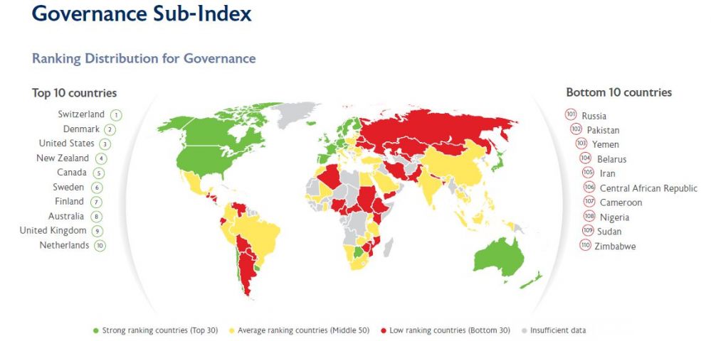 Рисунок 4. Мировая карта управления (источник: Legatum Institute)