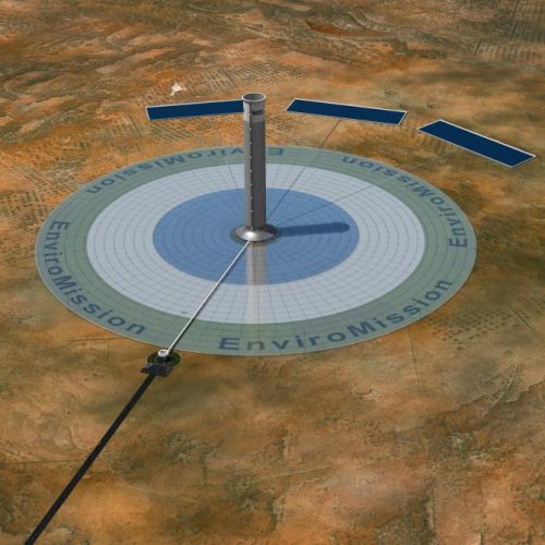 Идея, лежащая в основе «солнечной башни» от EnviroMission, предельно проста. Солнце освещает и нагревает участок земли у подножия башни, покрытый теплоизолирующим материалом и представляющий собой что-то вроде очень большой теплицы. Нагретый воздух стремится вверх, стекаясь к единственному (центральному) отверстию в покрытии. Именно здесь, в основании башни, находятся турбины, которые и производят электричество за счет естественного восходящего потока воздуха.