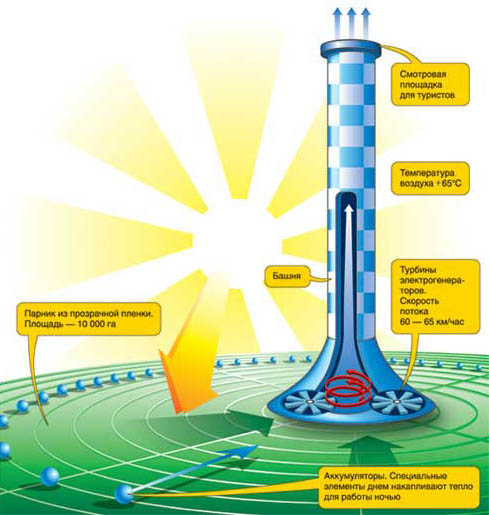 - «Солнечной башне» не требуется сырье – ни уголь, ни уран, ничего, кроме воздуха и солнечного света;